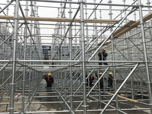 4、盤(pán)扣式腳手架還采用熱鍍鋅工藝,主要部件經(jīng)過(guò)內(nèi)、外熱鍍鋅防腐處理。這種工藝不僅提高了產(chǎn)品的使用壽命,還使腳手架具有美觀、漂亮的外觀,為工程建設(shè)增添了一抹亮色。