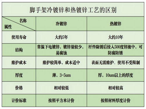 以上是 腳手架 冷鍍鋅和熱鍍鋅工藝的區(qū)別,希望對您有所幫助哦。